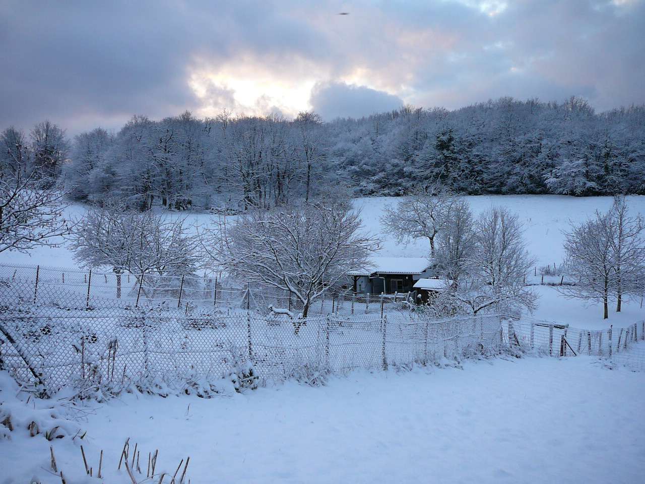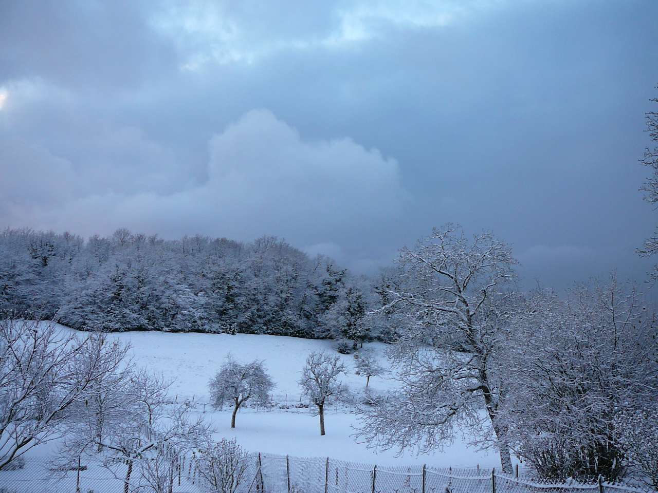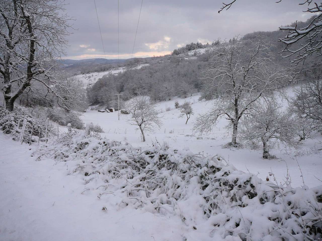 En cette fin novembre, l' hiver a fait une entrée remarquée sur l' Ain touchant en particulier dans un premier temps le haut Bugey. Voici quelques photos prises sur les hauteurs d' Ambronay en ce 26 novembre. La couche atteignait une petite dizaine de centimètres vers les 500 à 600 m d' altitude. Ce soir-là le mercure à 17 h affichait déjà -4,5°, présageant une nuit glaciale et elle le sera !, puisque le mercure descendit sous la barre des -10° sur les reliefs la nuit suivante.