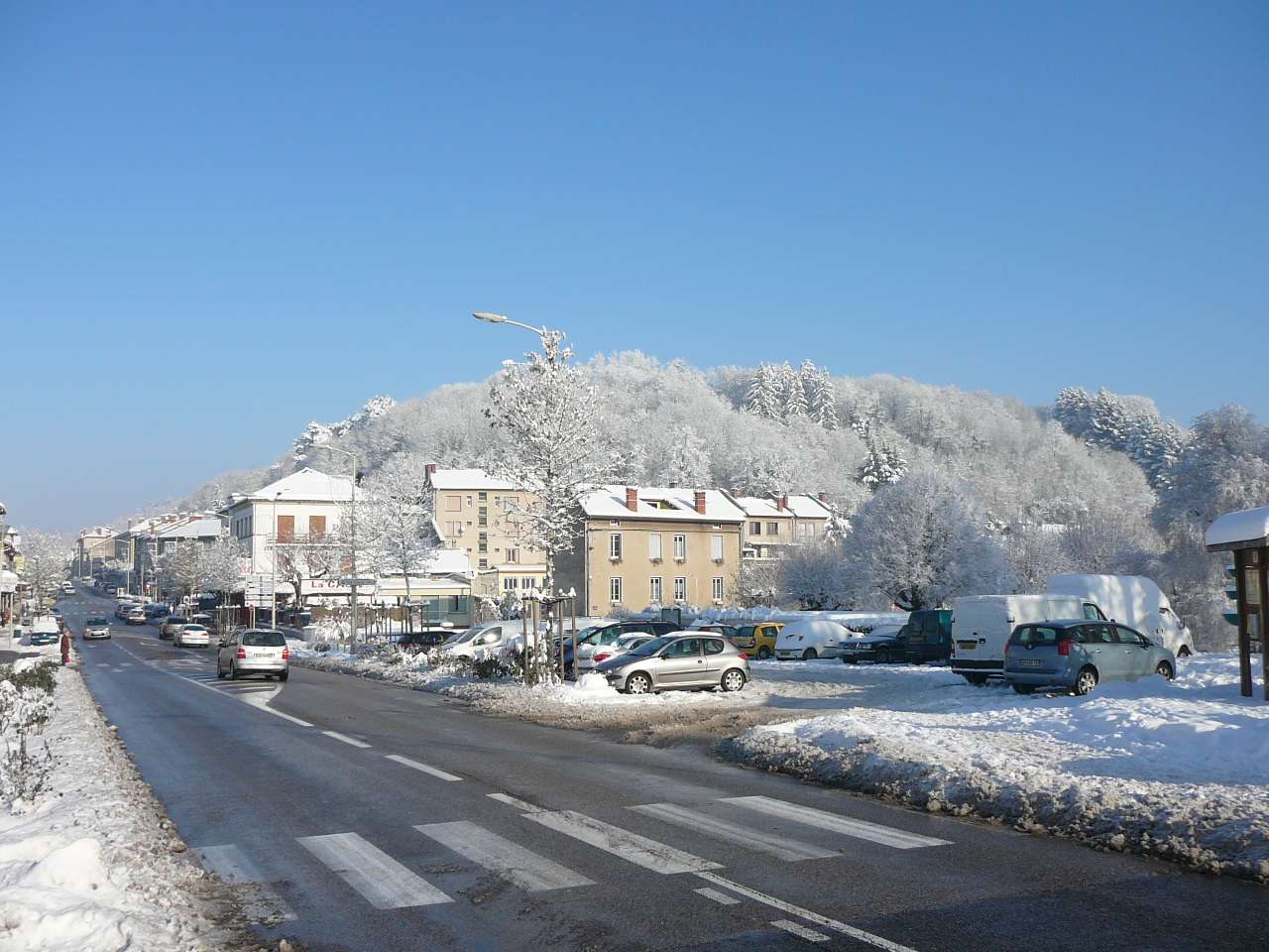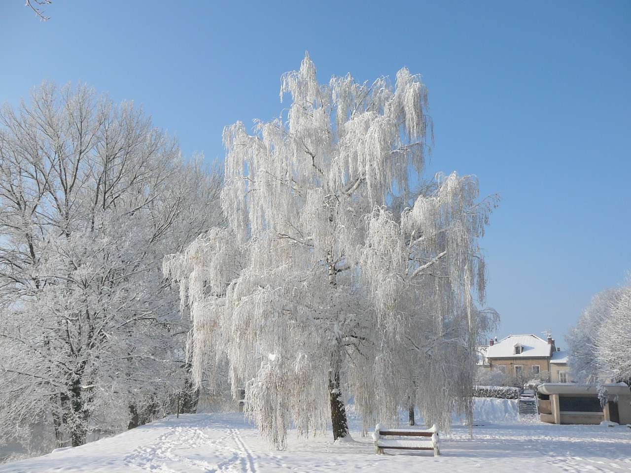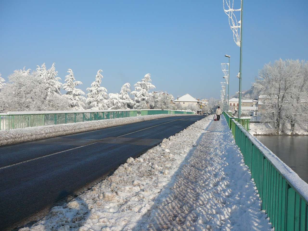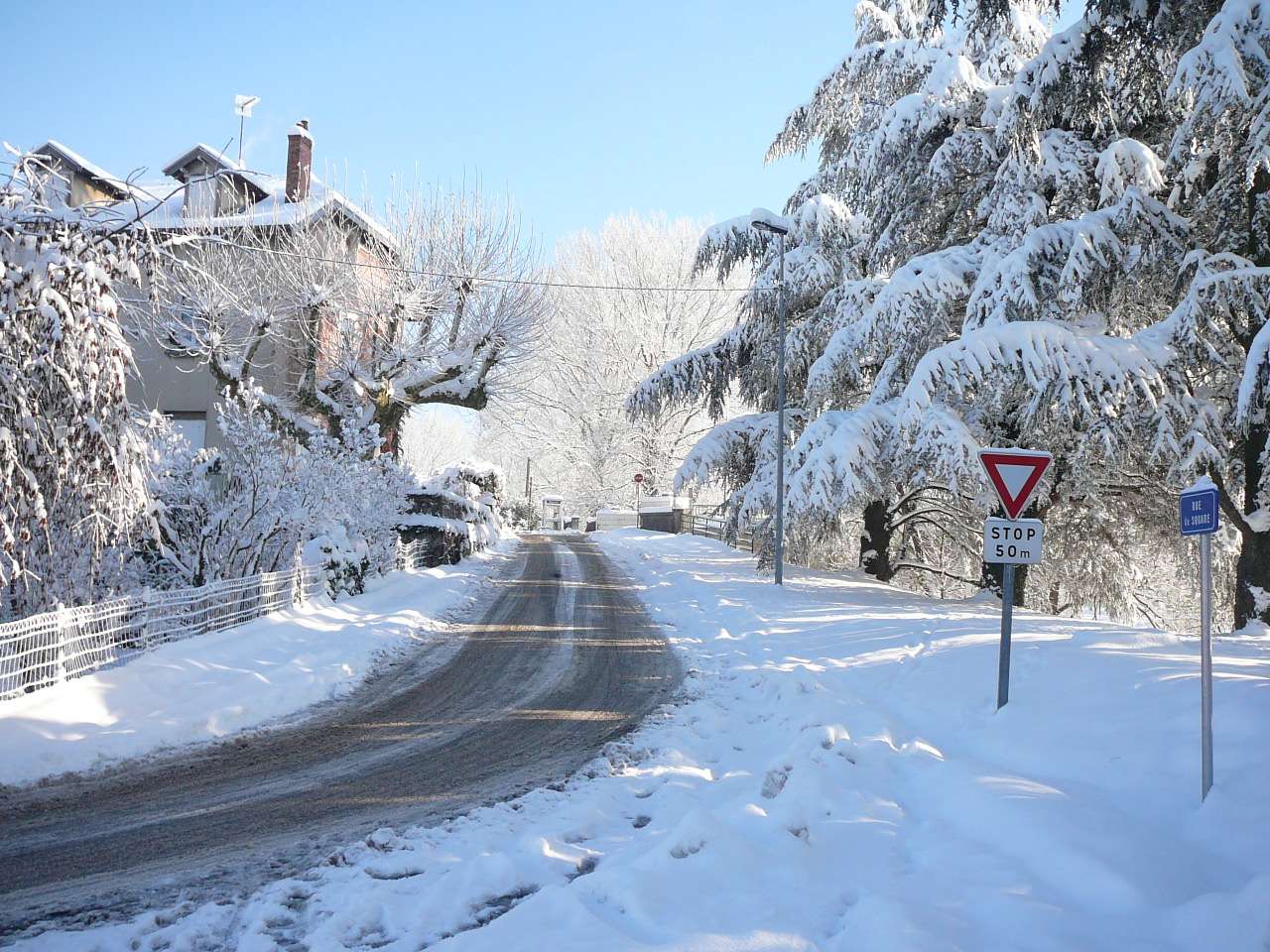 Paysages de cartes postales sur les bords de l' Ain en ce samedi 4 décembre après les chutes de neige assez importantes des jours précédents. On se serait cru dans une petite station de ski. Avec le soleil revenu et malgré un mercure largement négatif, il était très tentant d' aller profiter de faire une petite balade au bord de la rivière d' Ain à Pont d' Ain pour prendre quelques clichés, d' autant qu' en plaine ce genre de paysage ne reste souvent pas très longtemps....