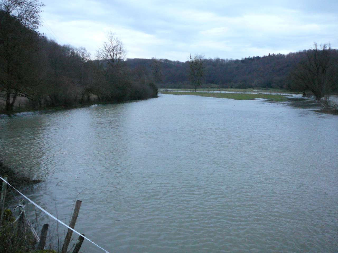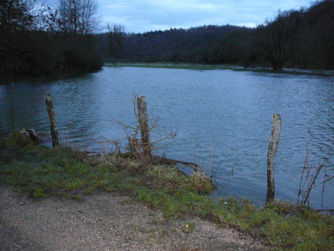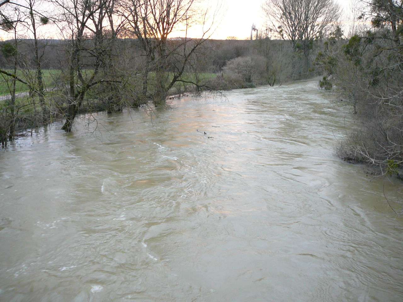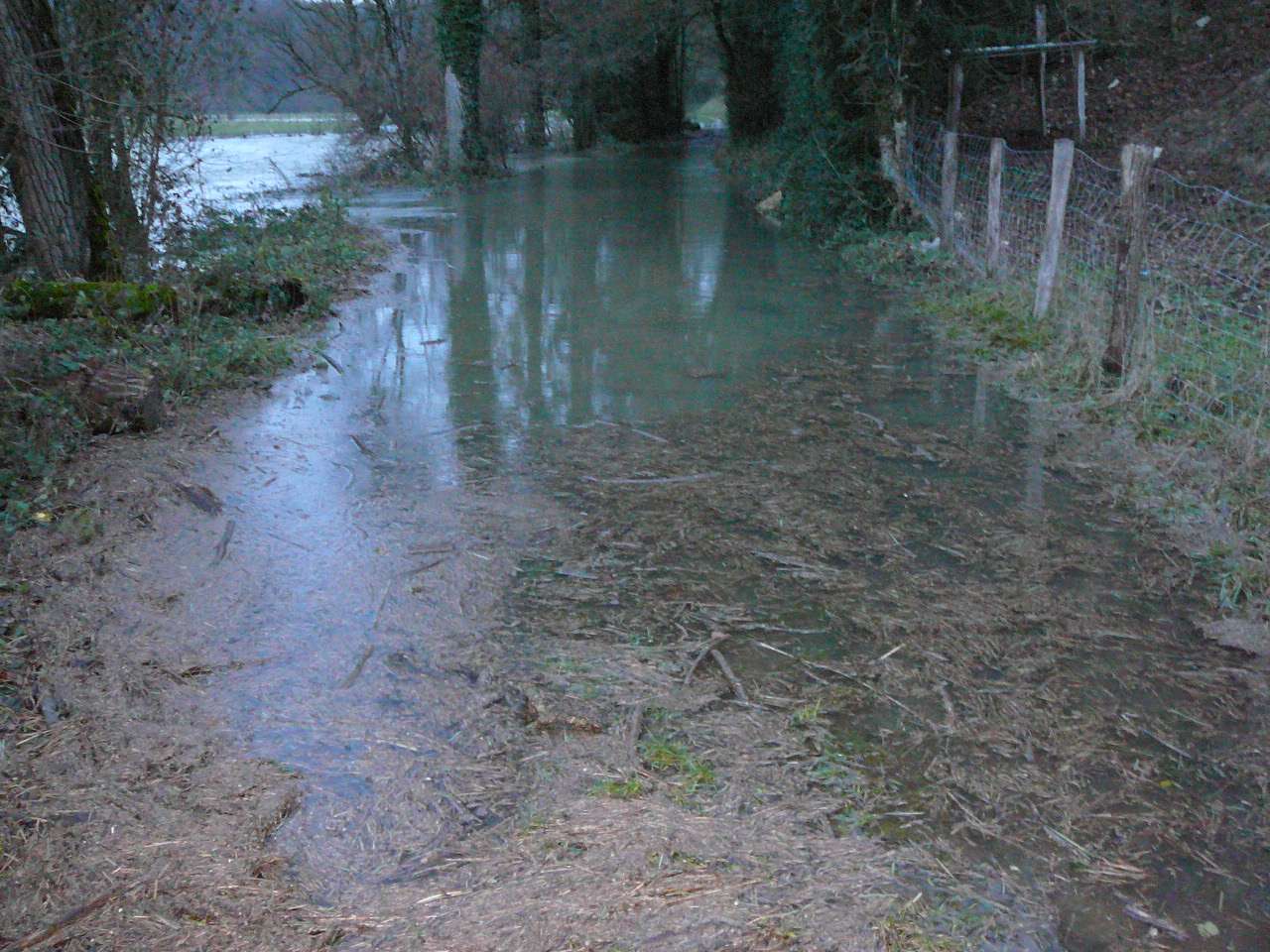 Les fortes pluies du jour couplées à un net redoux après les importantes chutes de neige tombées sur le Jura ont fait réagir le Suran; une situation classique pour ce cours d' eau capricieux qui peut grimper en seulement quelques heures; il se jette dans la rivière d' Ain à hauteur de Pont d' Ain. En ce soir du 7 décembre, il dépassa sa côte d' alerte et sa crue du printemps 2008. Il s' étalait dans la toute la vallée de l' Ain. Il a fallu attendre le lendemain pour un début de décrue.