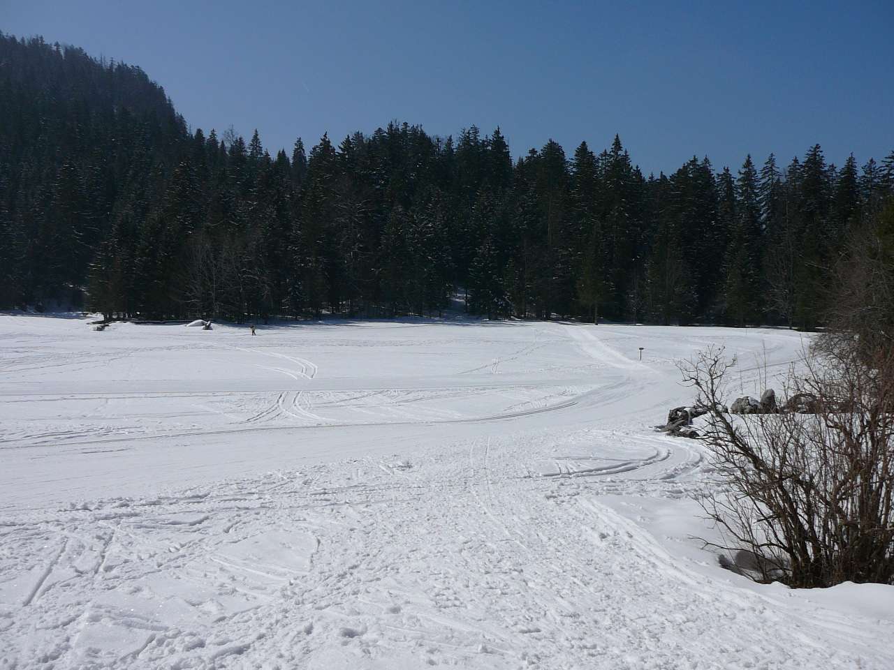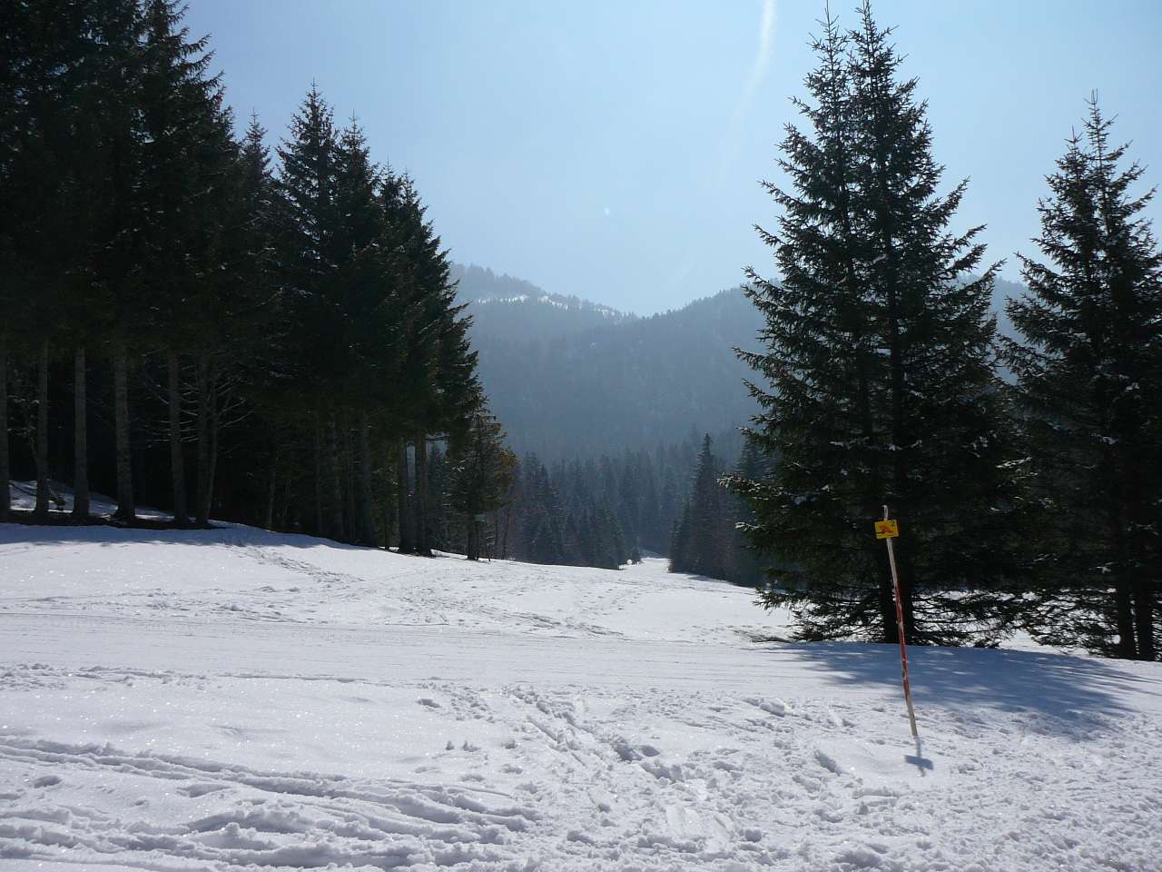 | Petite sortie en ce dimanche 14 mars 2010 au centre nordique de La Ruchère, en plein coeur du magnifique massif de la Chartreuse. Des conditions assez correctes pour cette sortie même si par moments les stratus sont venus jouer les trouble-fêtes en privant d' une vue nette les plus hauts sommets. Pas mal de monde à la station en ce dimanche qui précède la fin de saison. Les derniers kilomètres pour y accéder sont peu larges avec des virages assez serrés. La prudence est recommandée quand c' est en pleine période hivernale. Ce petit diaporama vous permet de voir les conditions en ce 14 mars. Il y avait au pied de la station à 1120 m d' altitude environ 40 à 45 cm. Une neige assez dure et parfois légèrement glacée mais encore bien praticables en raquettes; un peu plus de cm dans les secteurs ombragés ( 60 à 70 cm) avec une meilleure qualité de neige. Dans les endroits exposés en plein soleil, la neige commençait à devenir un peu humide. 4 parcours raquettes sont proposés à La Ruchère. L' un d' entre eux vous permettra d' accéder au col de La Ruchère à 1450 m ou bien de prolonger votre parcours jusqu' au sommet du Petit Som. |