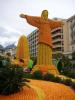 | En parallèle de son carnaval, Menton présente chaque année sa fête des agrumes avec un thème différent pour chaque édition. En 2006, le thème était les carnavals du monde dont Venise, Rio ou Dunkerque. Vous pourrez sillonner sur plusieurs centaines de mètres carrés les 2 allées gravillonnées de ces jardins et en prendre plein les yeux. Pour l' édition 2006, on pouvait découvrir de beaux monuments et de bien belles mises en scènes de carnaval. Il faut savoir que certaines de ces compositions peuvent atteindre plusieurs mètres de haut et c' est cela qui fait véritablement le travail effectué. Cette année on pouvait décoller pour le carnaval de Rio au Brésil avec le Cristo Redentor, prendre le chemin des Antilles avec ses palmiers, l' Inde et son Buddha, faire une halte chez nos amis belges avec les Gilles et les géants et dans le nord de notre pays du côté de Dunkerque, sans oublier le romantisme du côté de l' Italie avec une très belle représentation des canaux de Venise qui attirèrent beaucoup de visiteurs et retinrent leur attention ; en effet il était bien difficile de ne point succomber au charme de cette ville italienne où les gondoles décorées sont tout à fait propices à la flânerie et aux balades. Un petit détour s' impose à Monaco situé à quelques kilomètres de Menton : son port, son église où est inhumée la famille Grimadi et puis la relève de la Garde devant le Palais à 12 h précise si mes souvenirs sont bons !. |